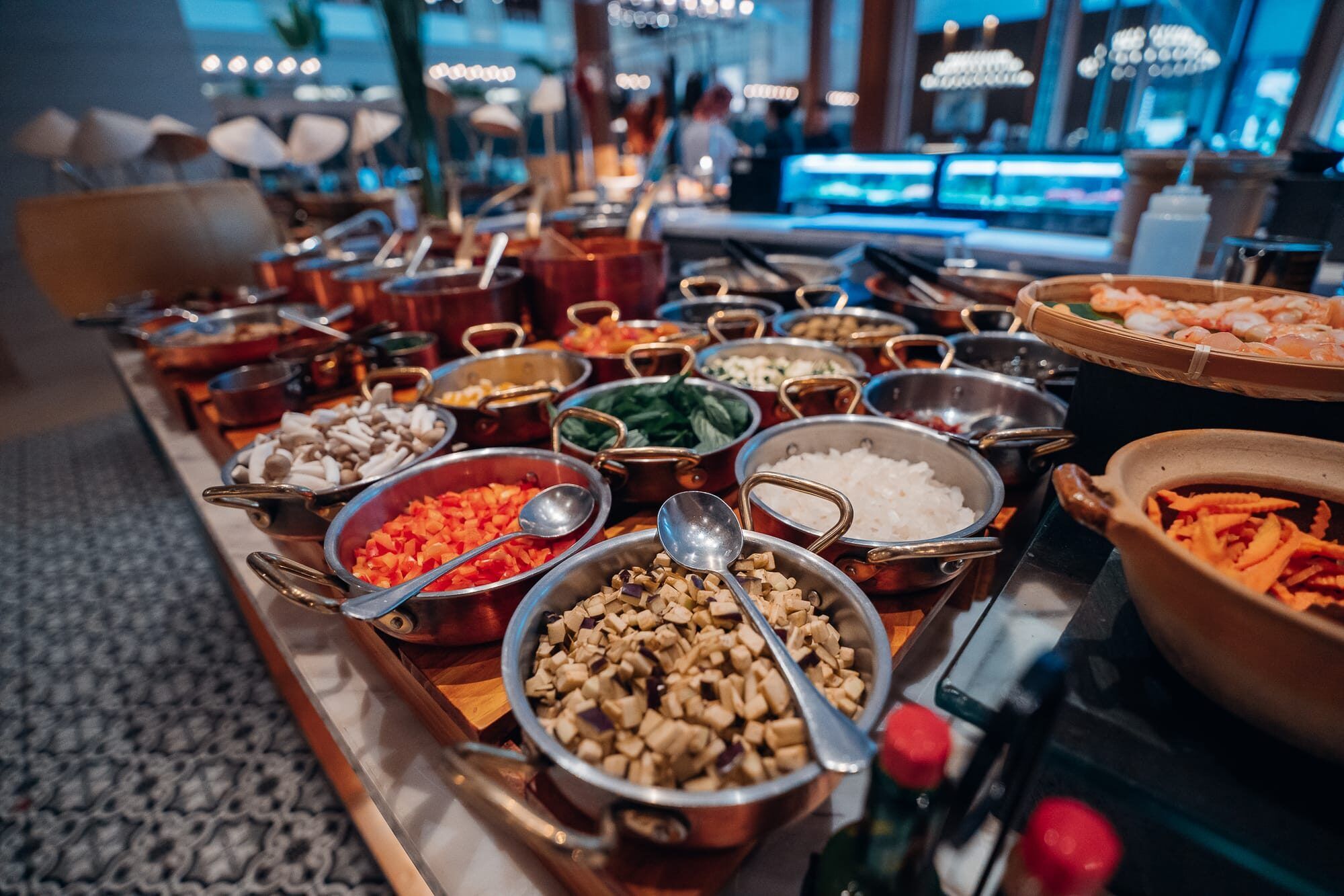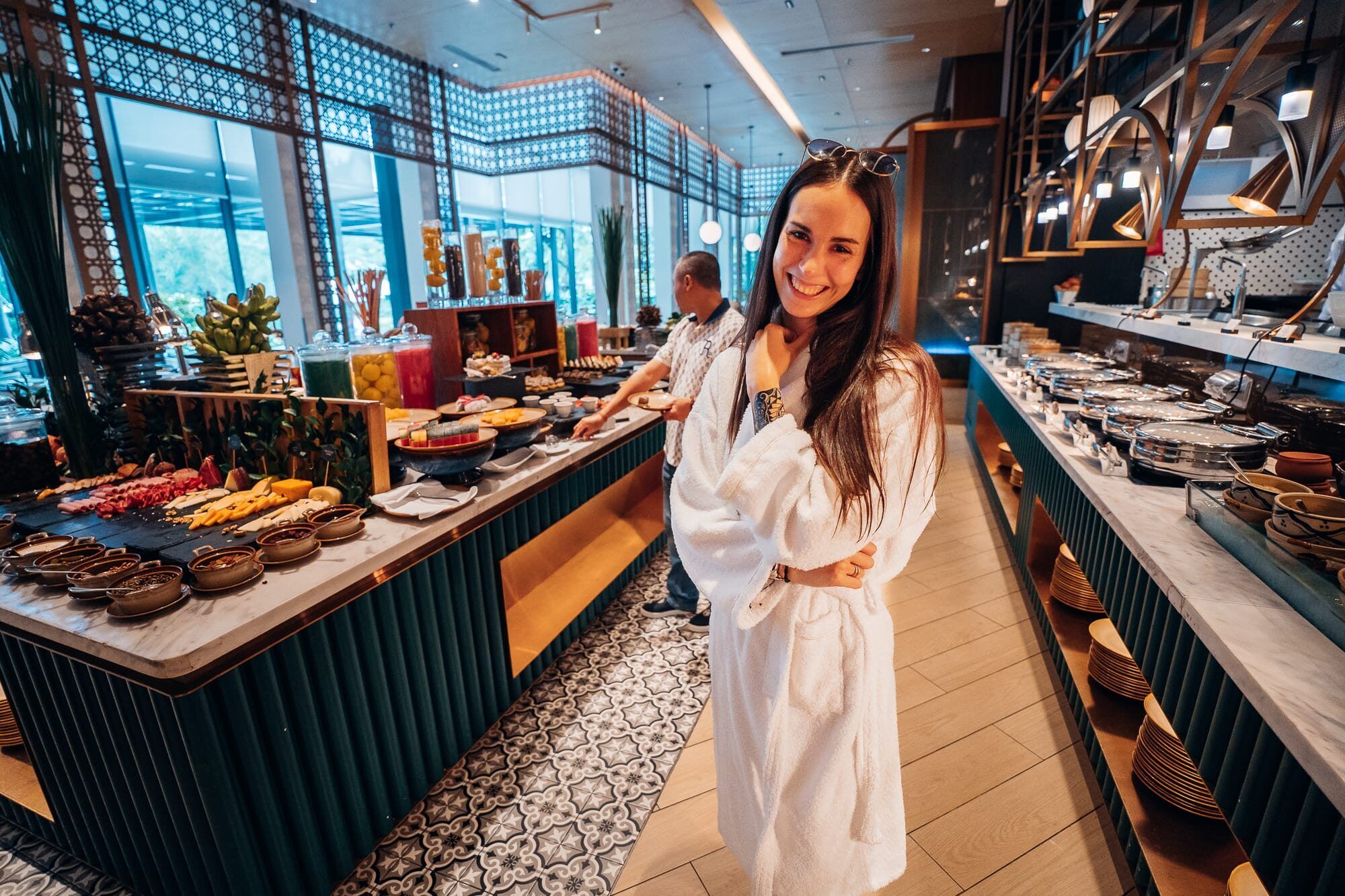 Da uns das Frühstücksbuffet, oder generell die Buffets im Hotel, in den letzten Tagen sehr angelacht hatte, haben wir uns für den letzten Tag das dann doch recht teure Buffet gegönnt. Mit knapp 20€/Person ist es für vietnamesische Verhältnisse echt nicht günstig, die Auswahl ist aber auch sehr groß. Es gibt nahezu alles. Frische Brötchen, Banh Mi Baguettes, diverse Brote, Gebäcke und auch Aufschnitte wie Käse, Wurst, Fisch und mehr. In Vietnam dürfen frische Kräuter und Gemüse natürlich nicht fehlen, ebenso wie Pho, Dumplings und andere typisch vietnamesische Speisen und Gerichte. Außerdem gab es frisch gepressten Saft, frische kalte Kokosnüsse, eine gigantische Auswahl an Donuts aller Art und auch Cornflakes. Ebenso Obst mit Mango, Melone und Drachenfrucht, eine Crepe- und Waffelbar, wo diese frisch zubereitet werden und eine Auswahl an Salaten. Die süßen Gebäcke gab es auch in allen Varianten, manche sogar mit der vietnamesischen Flagge verziert. Wir haben uns nahezu durch alles durch probiert (ich mit einer Lactase-Tablette) bis wir pappsatt waren. Anschließend haben wir den Mittag im Zimmer etwas entspannt.