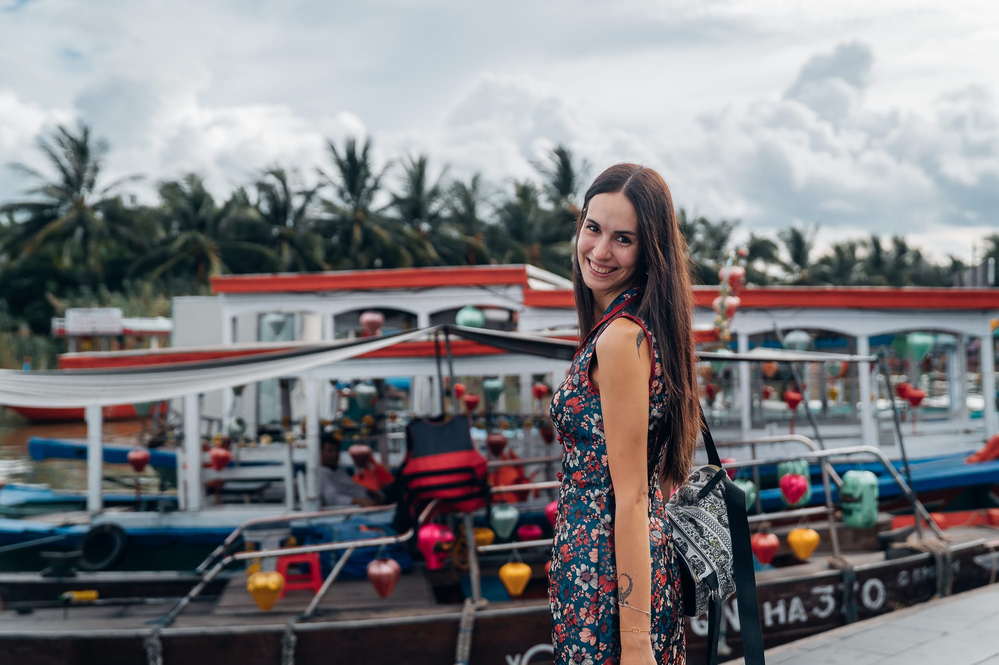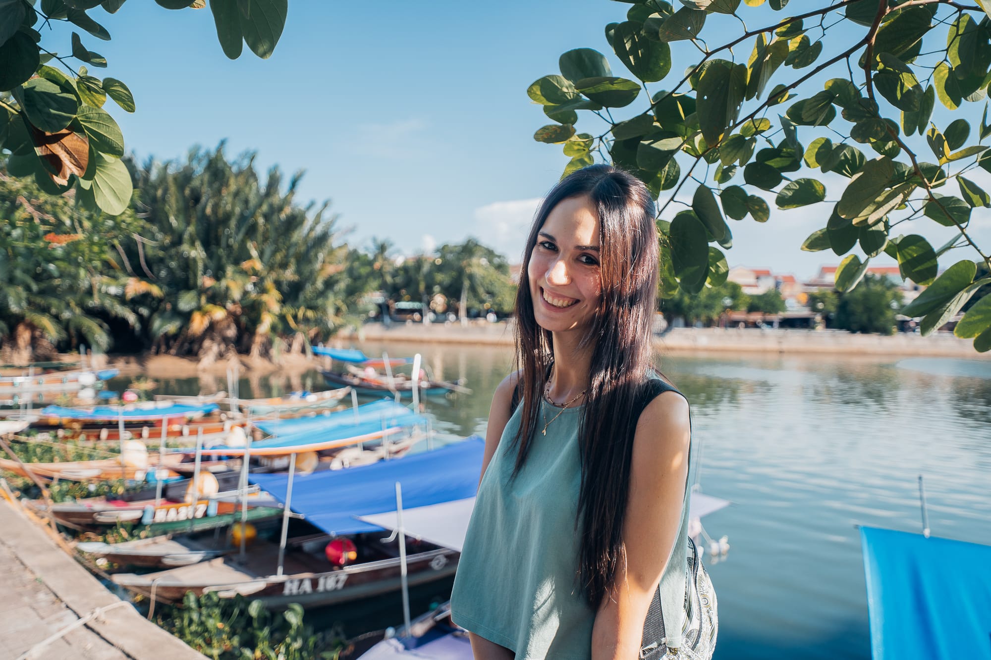 Unser erstes Ziel auf unserem Weg in die historische vietnamesische Stadt Hoi An, war Coconut Village. Ehrlicherweise muss ich sagen, dass ich mich ausnahmsweise vorher nicht sonderlich informiert habe, was uns dort eigentlich erwartet. Vielmehr wollte ich mich auch ein wenig überraschen lassen und da ich öfter gelesen hatte, dass Coconut Village zu den Orten gehört, die man sich bei einem Besuch in Hoi An ansehen sollte, sind wir einfach mit dem Taxi dorthin gefahren. Von Da Nang aus hat die Fahrt etwa 40 Minuten gedauert und uns knappe 10€ gekostet, also echt günstig. In Coconut Village angekommen, fragte unser Fahrer, ob wir danach weiter nach Hoi An wollten und bot an, für 100.000 Dong, also ca. 3€, auf uns zu warten und uns dann weiter nach Hoi An zu bringen. Ein Angebot, was wir gerne angenommen haben. Wir hatten noch nicht richtig angehalten, da wurden uns schon die Autotüren geöffnet und wir wurden von Vietnamesen in Richtung des angrenzenden Flusses geführt. Vermutlich wäre es schlauer gewesen, wenn wir uns vorher Tickets besorgt hätten, so waren wir völlig planlos und haben uns einfach durchführen lassen.