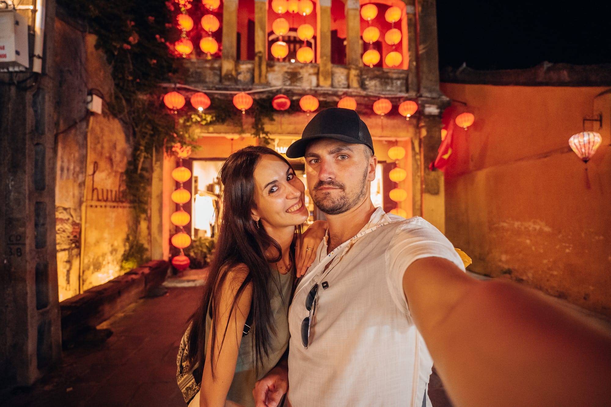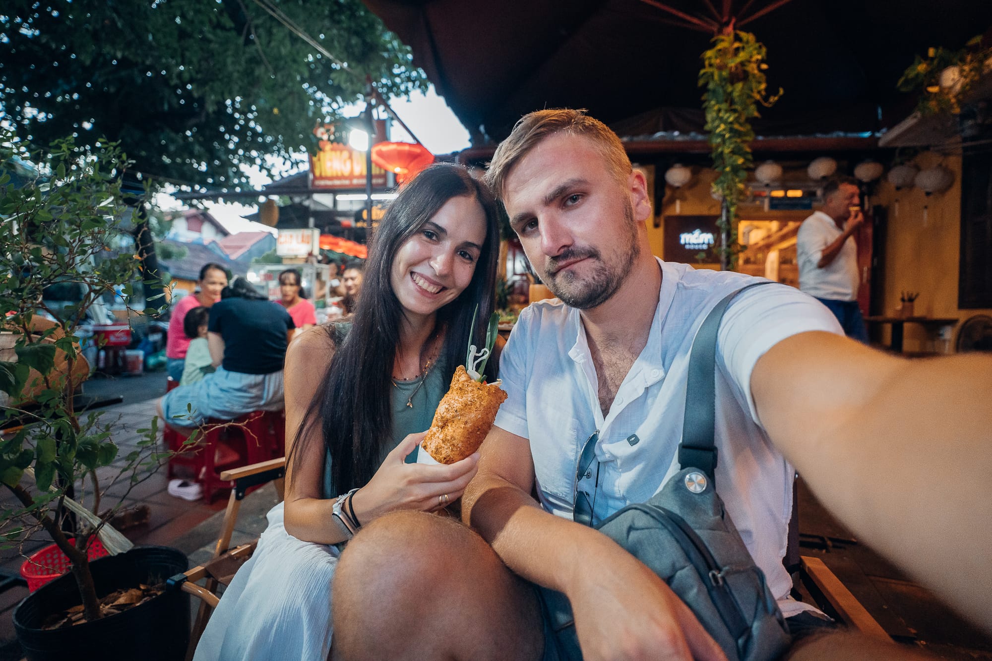 Natürlich durfte ein Banh Mi bei unserem Besuch nicht fehlen. Hier hat mich ein Restaurant angelockt (Chuben Banh Mi), die neben den typischen herzhaften Banh Mi auch süße Varianten anbieten. Hier hat Marc ein Banh Mi mit Beef und Kräuterkruste verdrückt und wir haben uns noch was kühles zu trinken genehmigt. Anschließend sind wir weiter durch die bunt beleuchteten Gassen geschlendert, haben die Laternen und das gesamte Feeling bewundert und schließlich noch die Kaschmirgeschäfte für uns entdeckt. Ja, auch hier mussten wir einfach zuschlagen. Zum Abschluss waren wir noch in einem Pub ein Craft beer mit Chili sowie eine Cola trinken, bevor wir uns dann auf den Heimweg zurück nach Da Nang gemacht haben. Tatsächlich hatten wir dann auch schon 21:30 und es machte den Eindruck, dass die meisten Läden auch so langsam schließen. Bevor wir mit dem Taxi zurück gefahren sind, haben wir uns noch zwei vegane Banh Mi an einem Straßenstand (Lê Hội Bánh MÌ Chay (Le Hoi Vegan Banh Mi) gegönnt. Dann ging es in 40 Minuten Fahrt für weitere 10€ zurück in unsere Wohnung, wo wir nach einer Dusche auch erschöpft ins Bett gefallen sind. Eins ist aber klar: Hoi An hat uns unfassbar gut gefallen und wir wollen noch einmal dorthin. Alleine, um uns auch Ancient City, den beleuchteten Fluss und den anderen Teil dieser beeindruckenden und faszinierenden Stadt anzusehen.